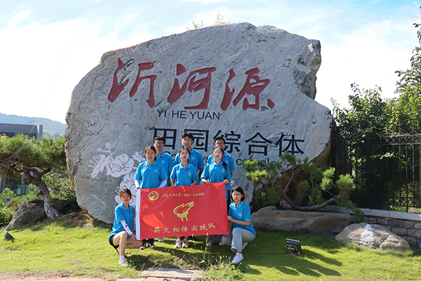 在采访中队员们了解到,龙子峪村的发展模式借鉴了日本直岛的改造经验,将艺术与“三农”创造性地融合,通过艺术营造改善农村的环境风貌,对优质农品进行品牌化、创意化的再设计、再包装带动农业发展,对农民进行艺术培养及专业培训,让其充分参与和受益。整个项目依托原有桃花岛景区及龙子峪丰富的人文资源和自然资源,以龙子峪为核心,联合周边刘家坡等6个村,共建田园综合体。2018 年向山东省政府申报了沂河源田园综合体项目并成功入选,成为淄博市第一家省级田园综合体。在董方军的推动下,山东财经大学乡村振兴学院于2020年12月在龙子峪村“落户”,山东省首批乡村振兴齐鲁样板示范区——沂河源田园综合体也在此挂牌成立。