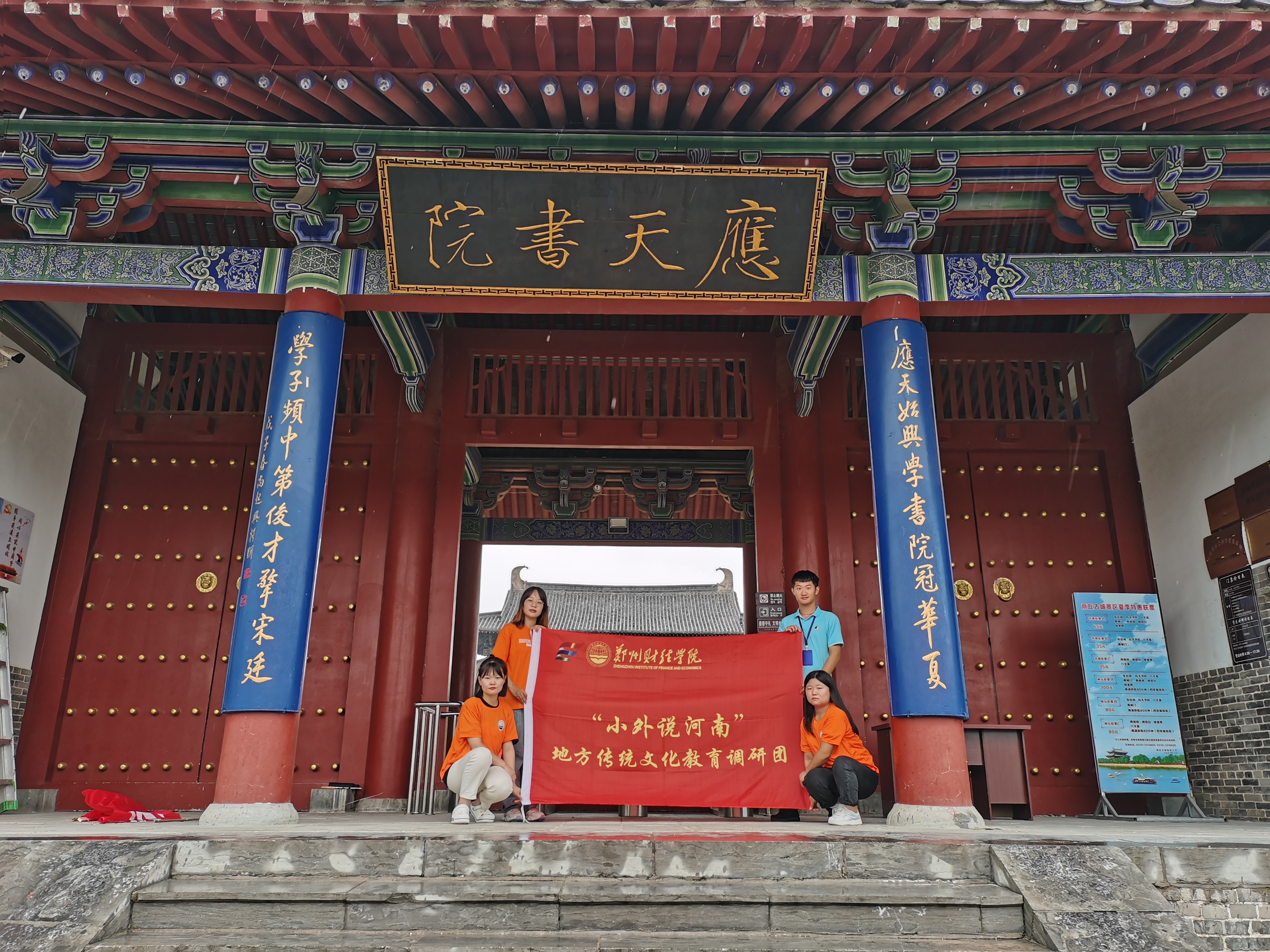 商丘人文精彩,古城魅力无限。坐落于商丘古城的应天书院,蕴藏着哪些文化财富?在历史上发挥了什么作用?如今又有怎样的教育价值?人们对书院的了解有多少?带着这些疑问,2021年7月19日-21日,郑州财经学院外国语学院“小外说河南”地方传统文化教育调研团来到了商丘古城对应天书院进行了调研活动。