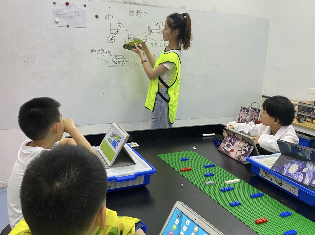 为给日常上学的小朋友们带来一些新的学习体验,提高他们的想象力和创造力,让孩子们学会更好地表达和思考,6月28日——7月26日,南京师范大学泰州学院“童心同行,共筑未来”实践团队联合常熟棒棒贝贝乐高科技中心(世贸校区) 、常熟棒棒贝贝乐高科技中心(招商城校区) 共同举办了为期一个月的“童心同行,共筑未来”的暑期公益课堂。7月5日——7月11日,志愿者们来到常熟棒棒贝贝乐高科技中心,开始了第二周的课程。 在第二周的课程中,除了平时的建模理论课,我们还增加了关于英语课的学习。