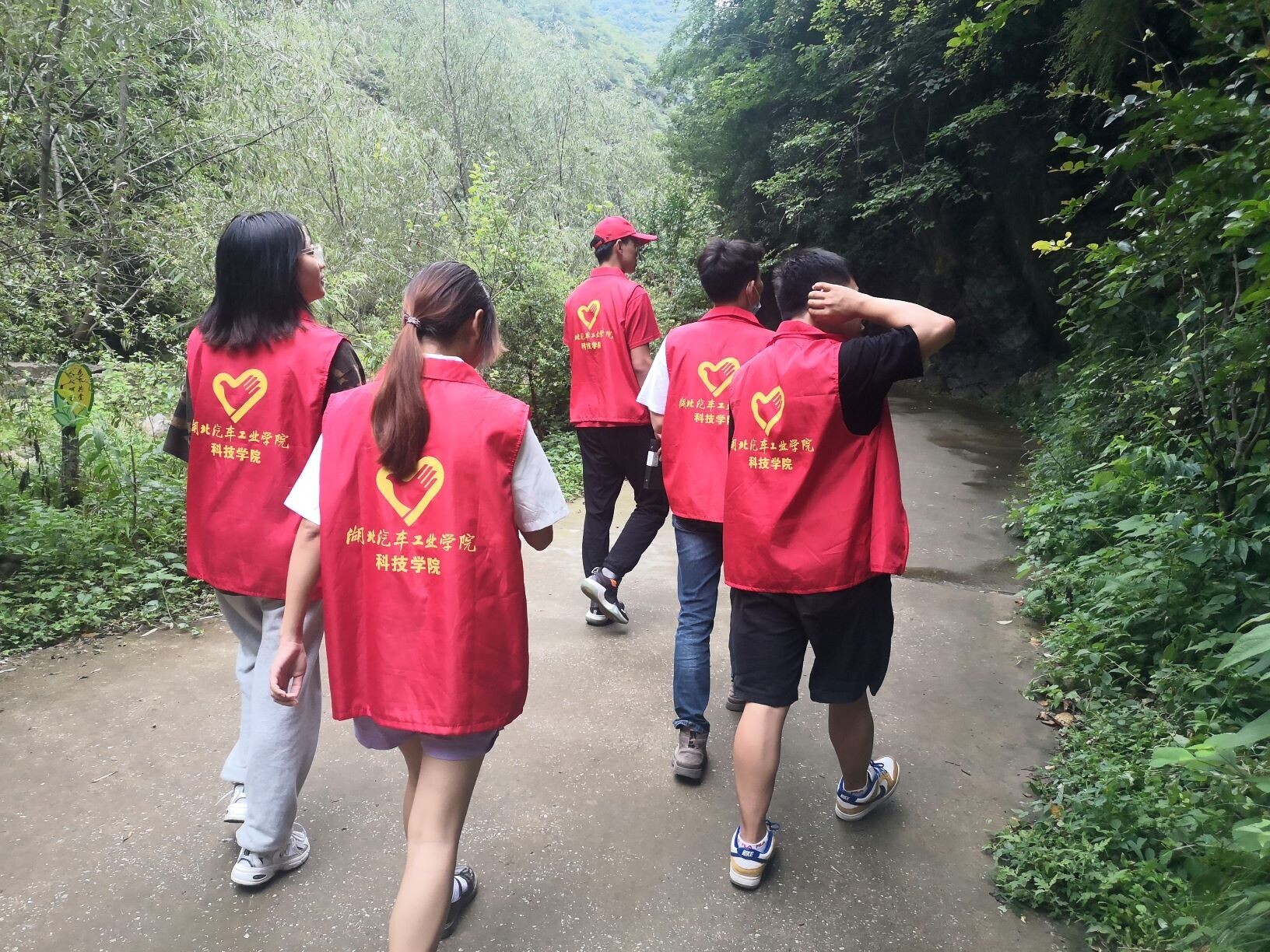 图为实践团队在工作人员的指引下进入景区深处。通讯员 杜宏哲 供图