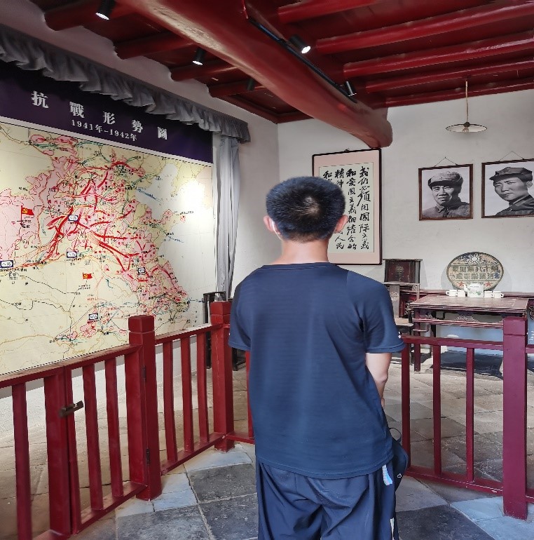 7月29日,洛阳师范学院“河南红色场馆调研队”洛阳分队来到了位于洛阳市老城区南关贴廓巷的八路军驻洛办事处纪念馆。分队队员跟随研学队伍一同参观了纪念馆。在此过程中队员了解了纪念馆的布局,聆听了其在民族危亡时期的历史背景,并逐步参观了馆内不同场馆和馆藏红色文物。八路军驻洛办事处馆内藏有文物459件,具有证件、印章、武器等和抗美援朝战争文物,主要展览革命文物、书籍及部分照片。馆内场馆设置了警卫室、通讯室、救亡厅、处长室等,并以造像还原的方式再现了当时的抗战的紧张氛围和场象。洛阳在抗日战争时期是豫西的抗日堡垒,起到了中流砥柱的作用,并为日后联系抗日根据地的武装力量起到了枢纽作用。