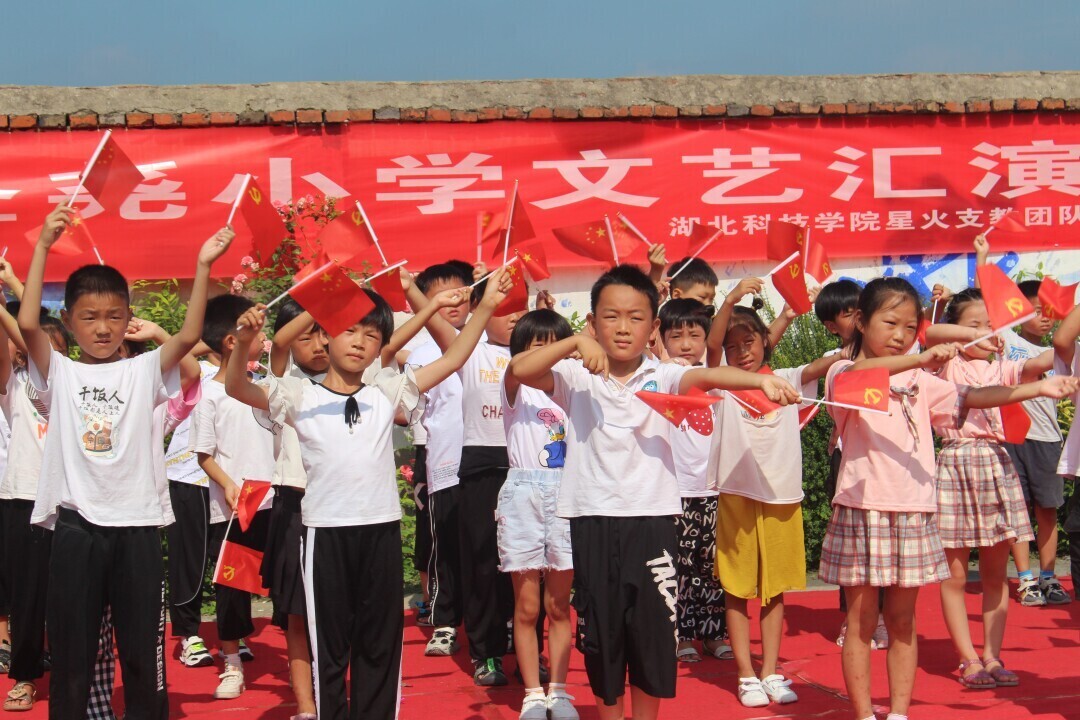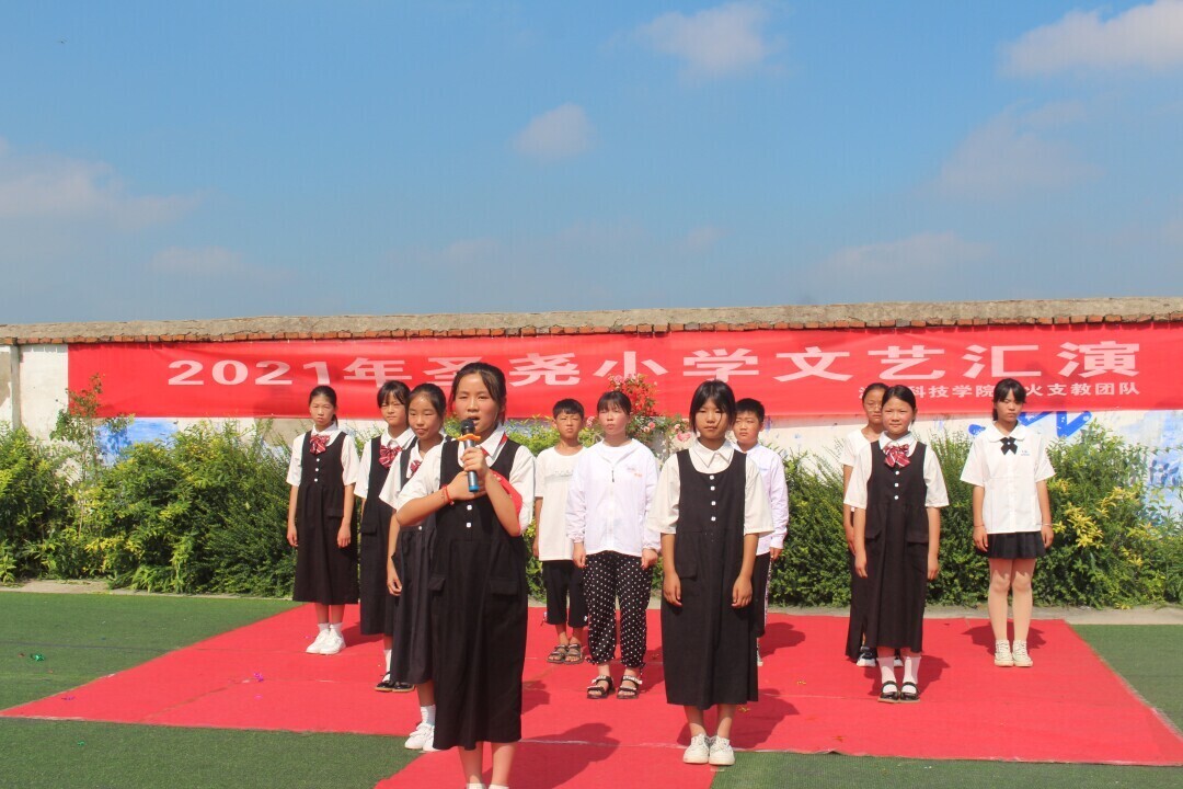 (通讯员 吴星仪 孔浩)湖北科技学院星火支教暑期重点实践团队于 2021 年 7 月至 8 月赴安徽省亳州市双庙镇圣尧小学开展暑期乡村夏令营,实践期间团队在开展特色课程的同时举办 “文艺汇演”,在文艺汇演中,团队结合建党百年,以深化爱国主义精神为主旨在此基础上,通过精彩纷呈的活动,编织着孩子们的欢乐童年,舞动着美丽的童心,使艺术的种子播洒在孩子们幼小的心里。