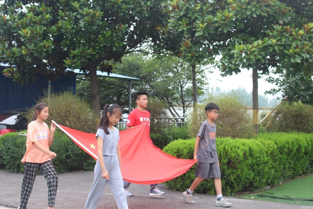 恰逢建党一百周年,为了让同学们深化爱国主义思想,团队紧扣 “青春向党,奋斗强国” 主题围绕百年华诞,切实将党史教育与爱国主义教育紧密融合,制定一系列的爱国主题教育活动。创建校园首支国旗护卫队,每周定时升国旗,进行国旗下的演讲;在班会中设置爱国教育板块,讲述爱国小故事,介绍有关有关国家的基础知识,如国旗、国歌、国徽等内容;课堂上引导孩子们制作有关爱国的手抄报,品读朗诵爱国文章和诗歌,观看爱国主义视频及纪录片。让孩子们认识到祖国的伟大,让红色基因的种子在学生心中生根发芽,厚植爱国主义情怀,让孩子们明白少年是国家的未来,少年是国家的希望,只有少年强大国家才会强大。